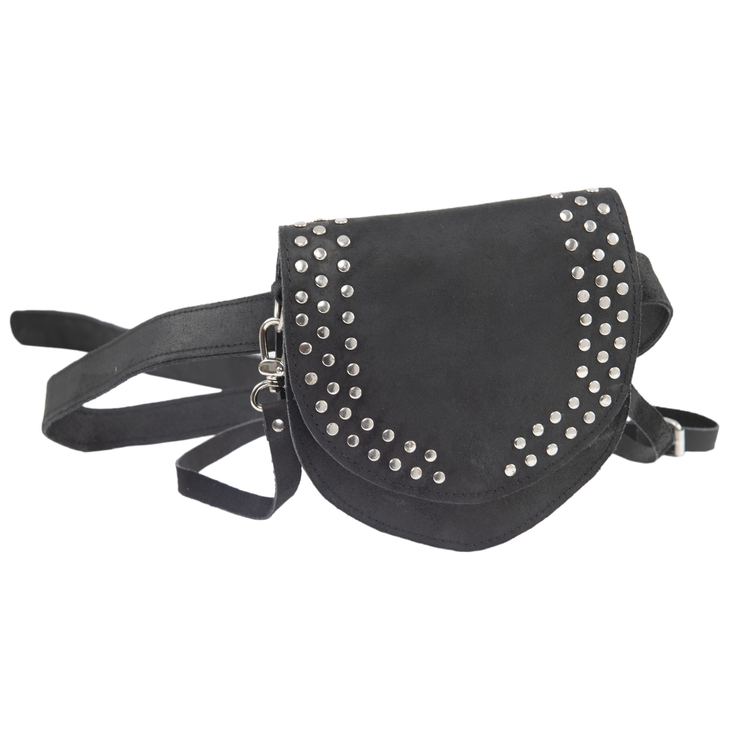 Black leather studded thigh bag with adjustable straps – Dario Lario waist pouch