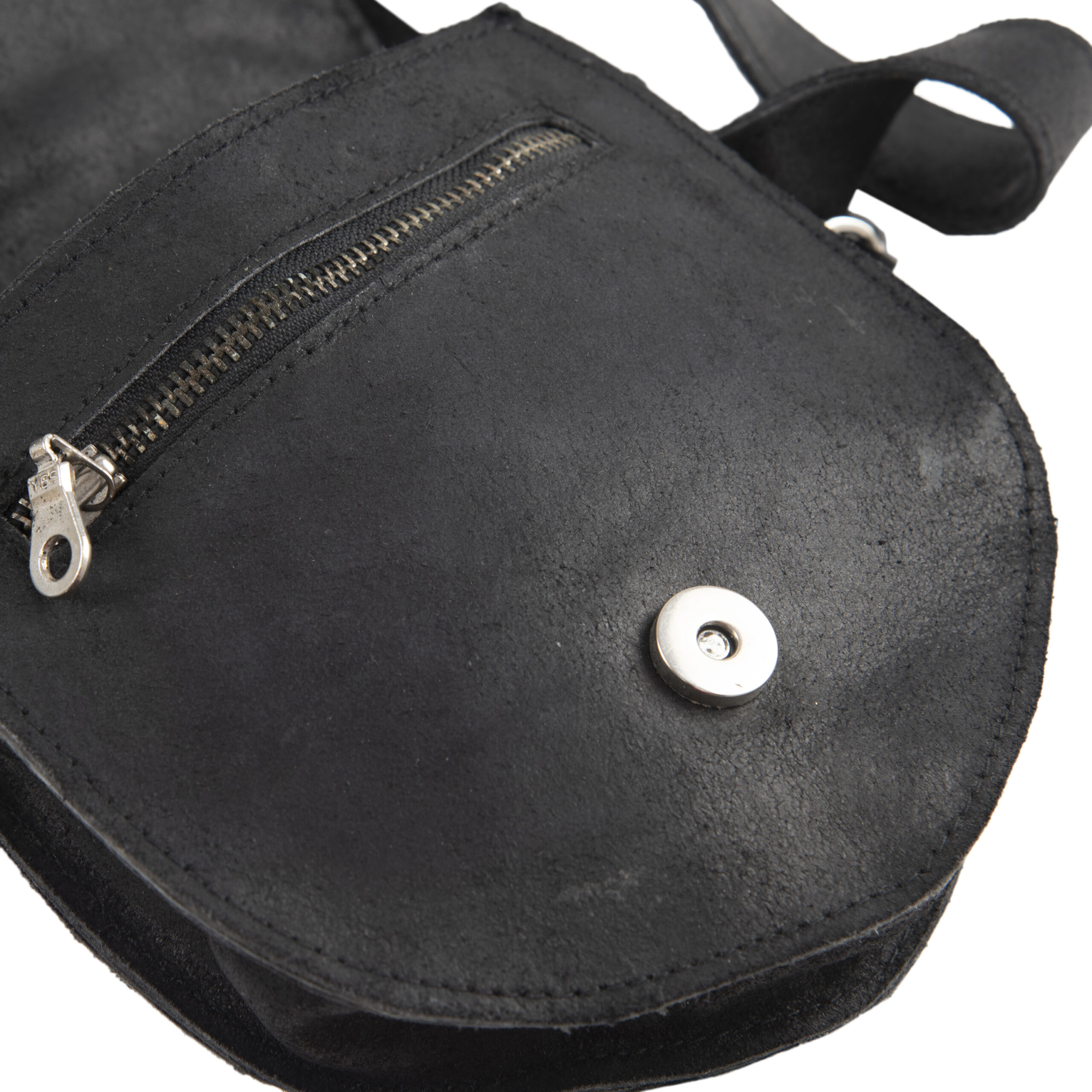 The Dario Flap Stud Leather Waist Pouch – Saddle Style Edition (Black)