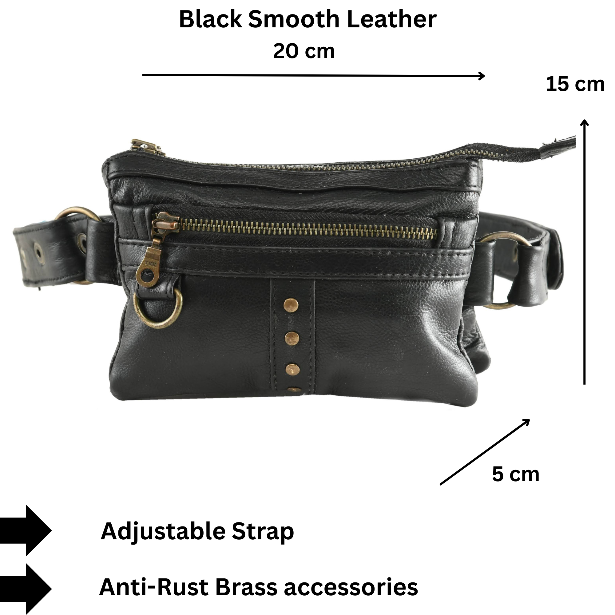 - Adjustability: Adjustable leather strap for waist or crossbody wear