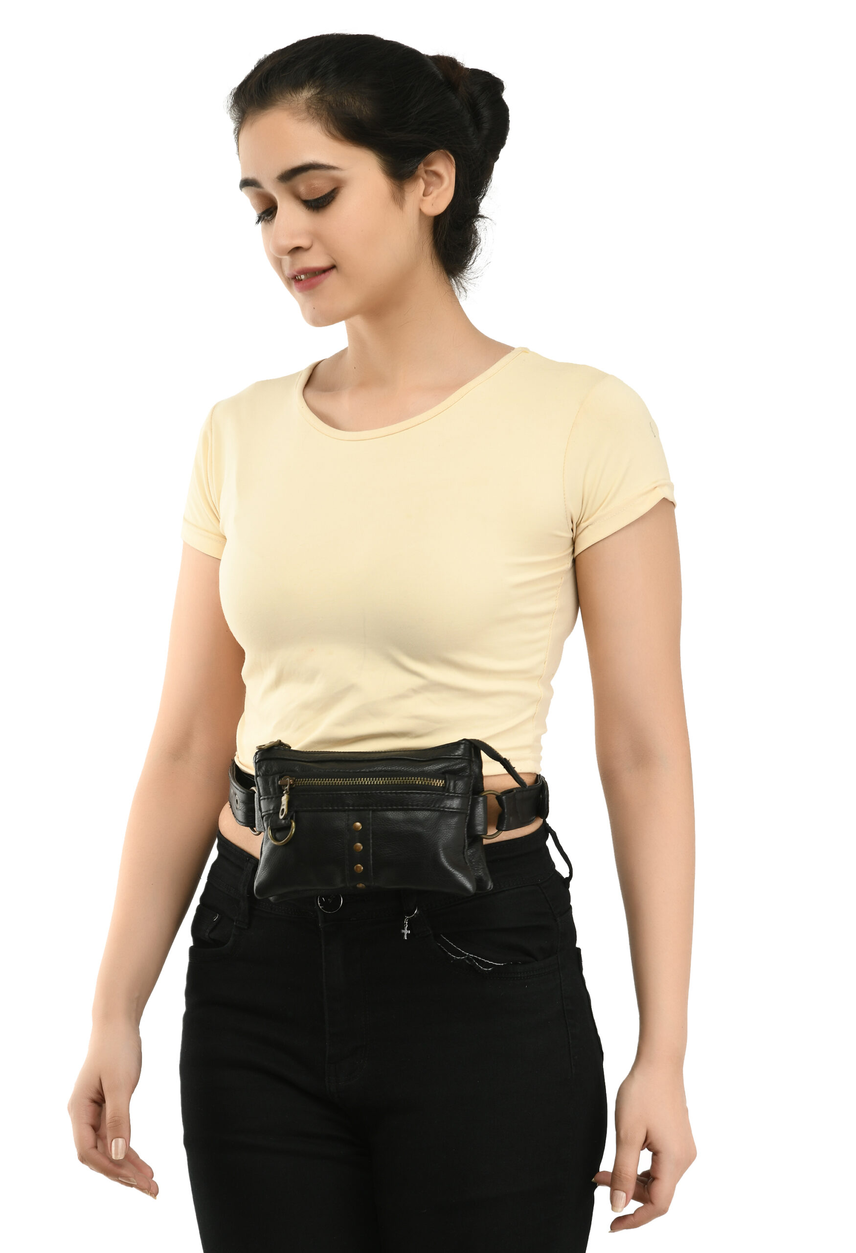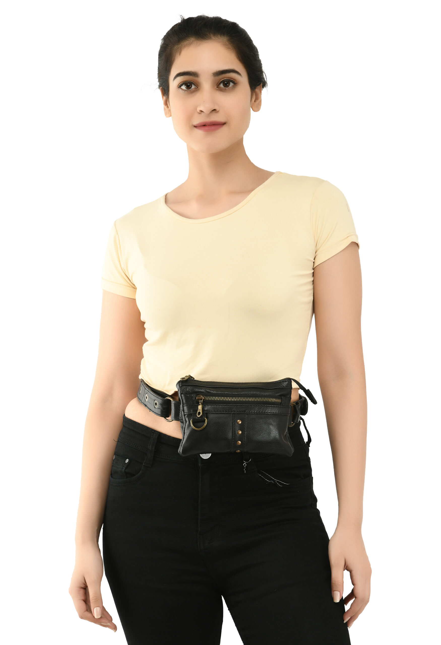 The Minimal Stud Leather Waist Pouch – Dual Zip Essentials Bag (Black)