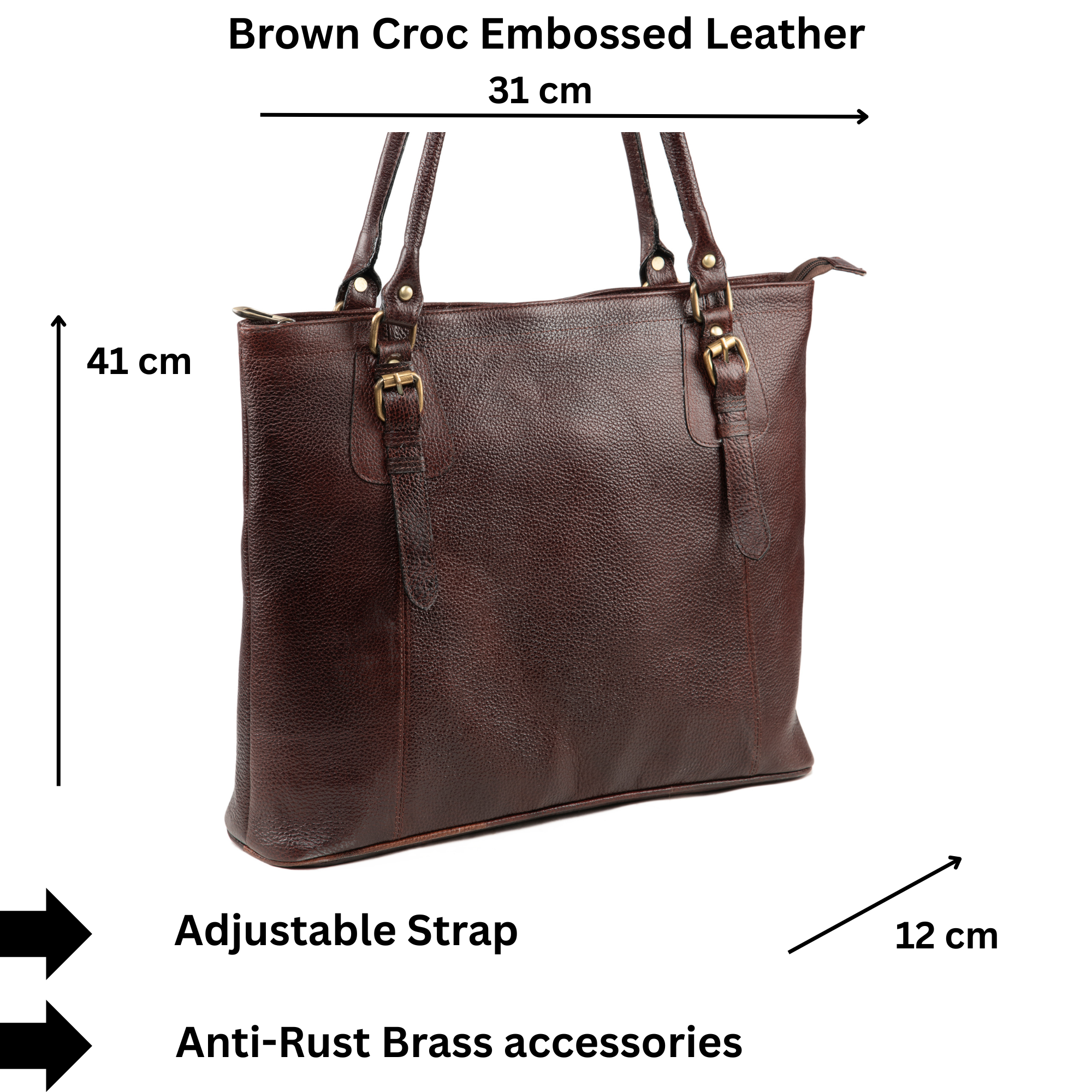 Classic Croc-Texture Large Tote Bag – Deep Brown