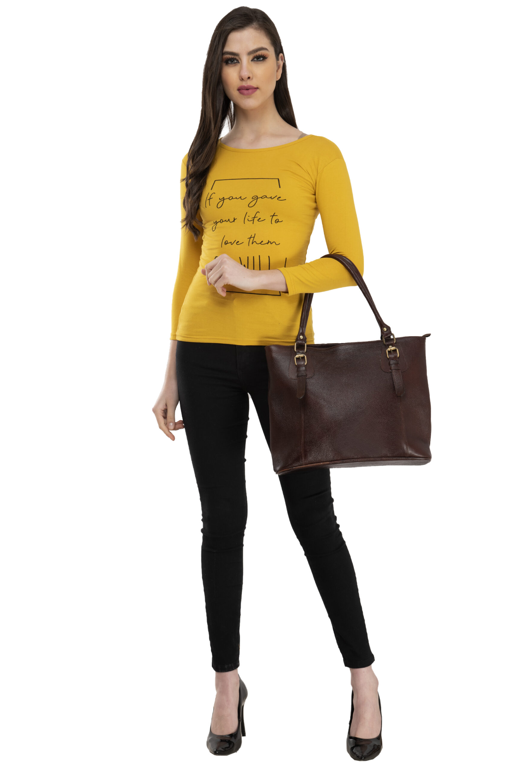 A warm, versatile Brown leather tote that complements both casual and formal outfits. Ideal for day-to-day use with a refined, contemporary look.