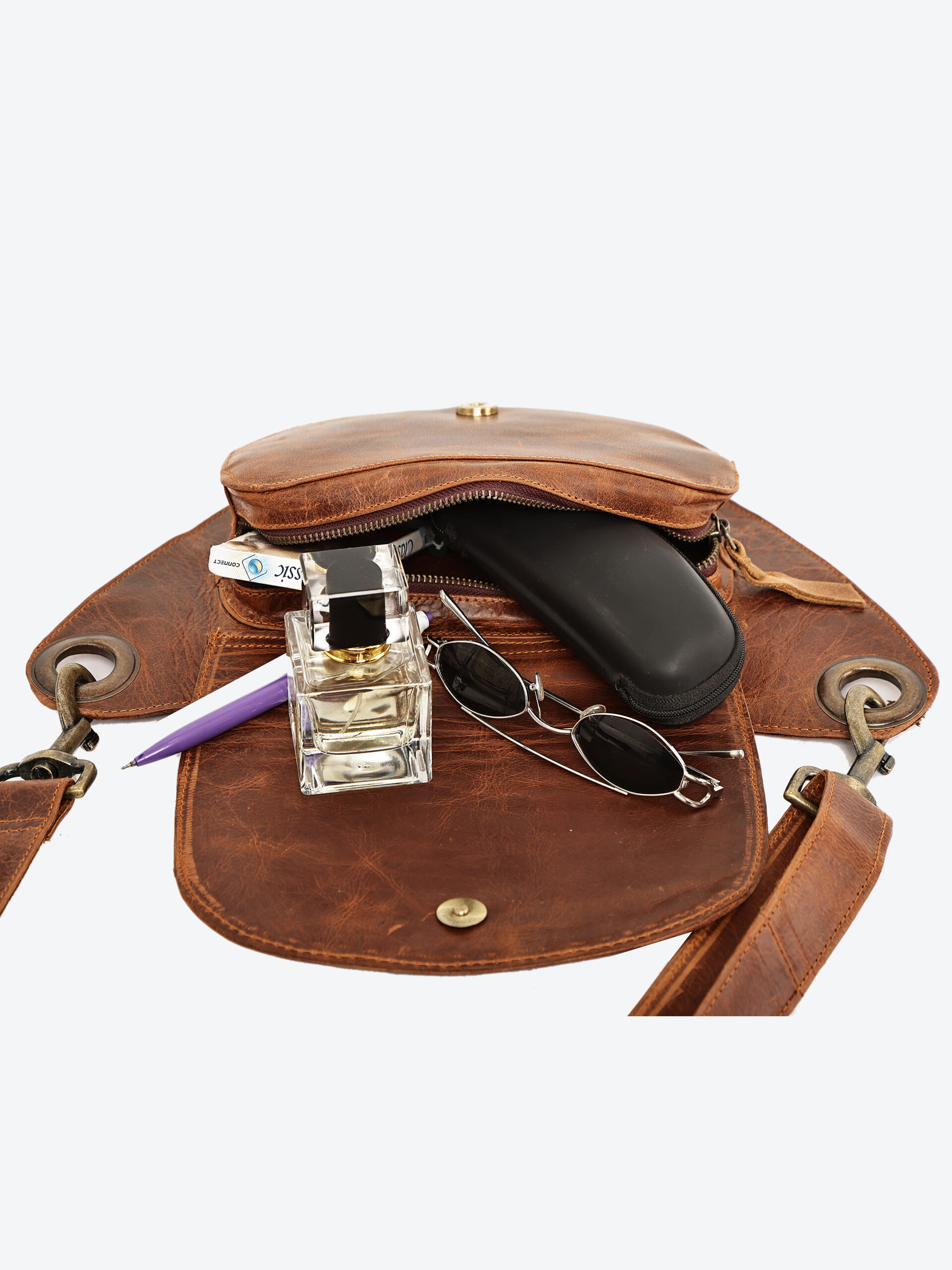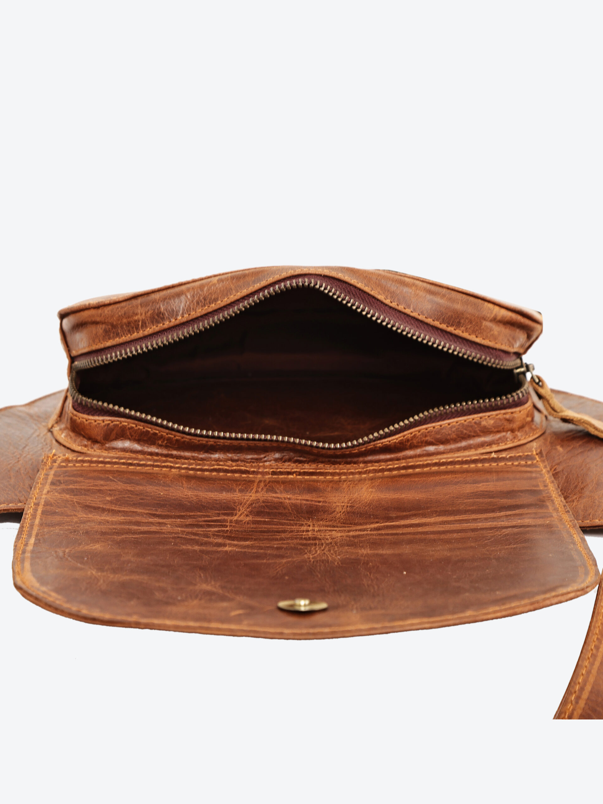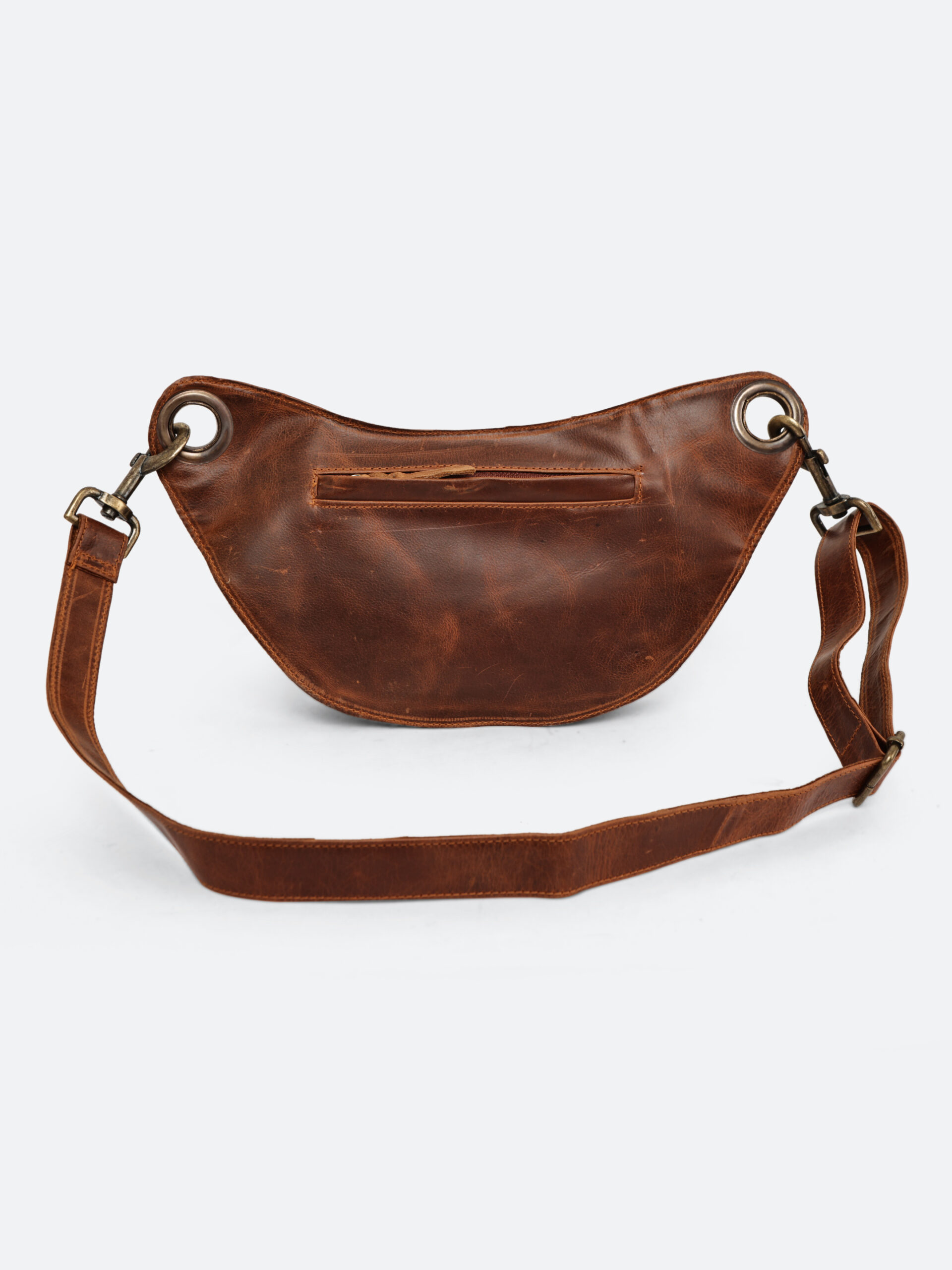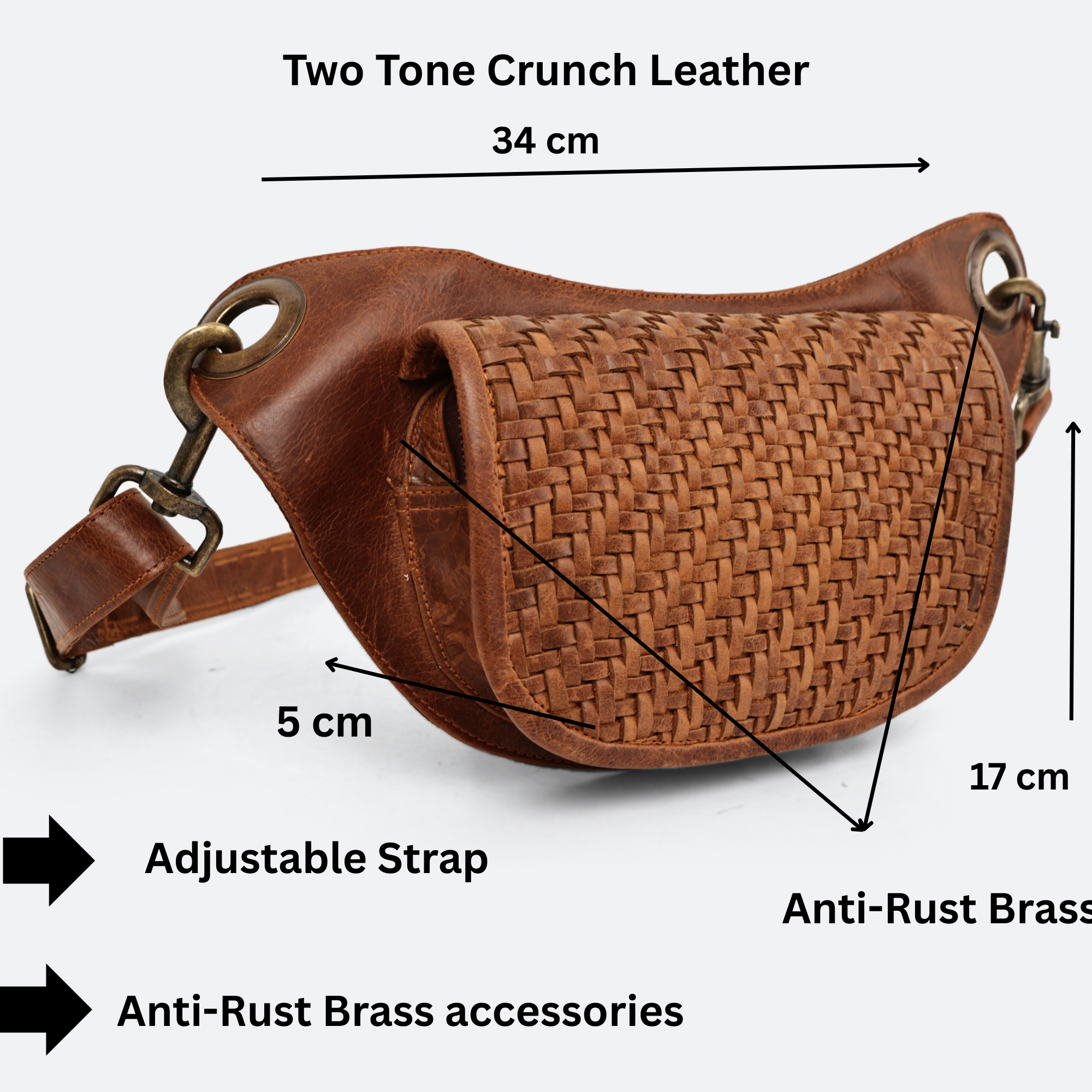- Adjustable leather strap – wear it around the waist or crossbody