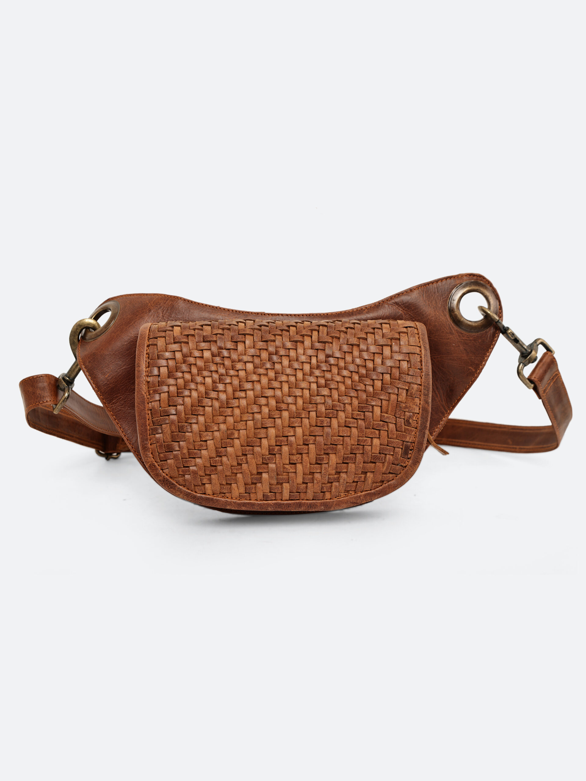 - Handwoven leather flap – unique artisan craftsmanship