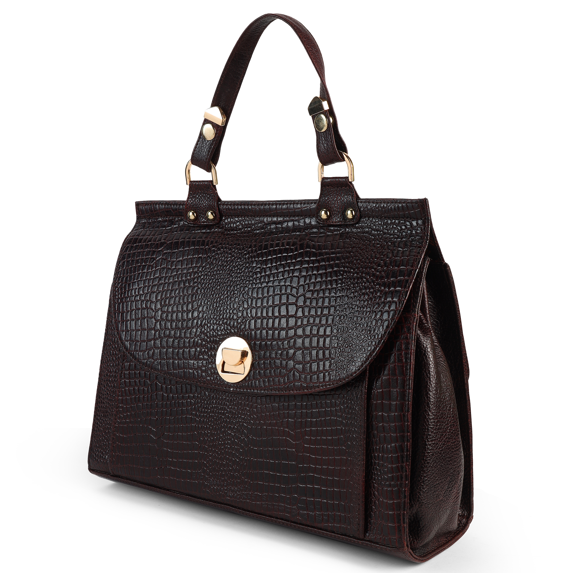 Dario Lario Luxe Croc-Texture Tote Bag – Deep Espresso Brown
