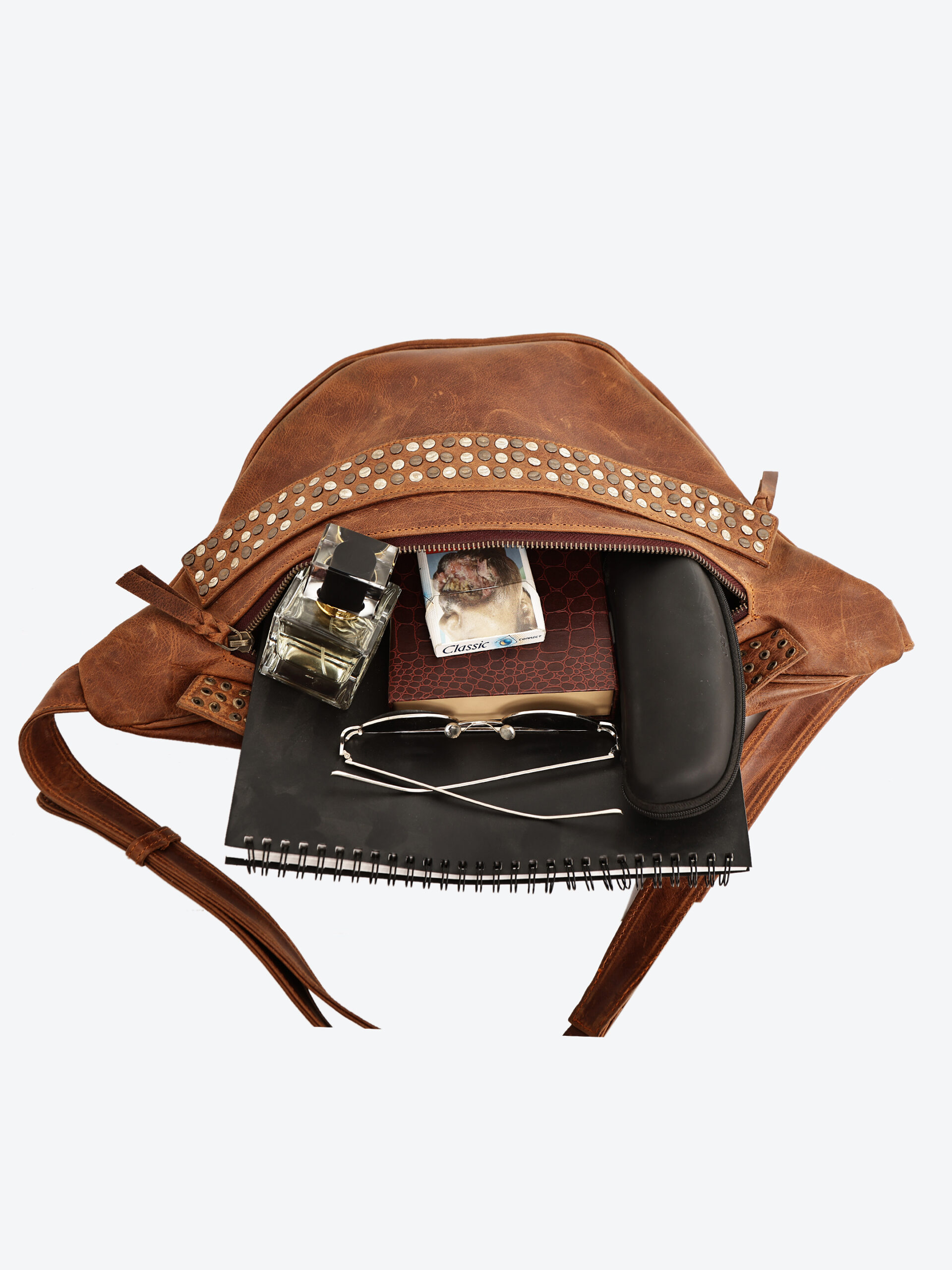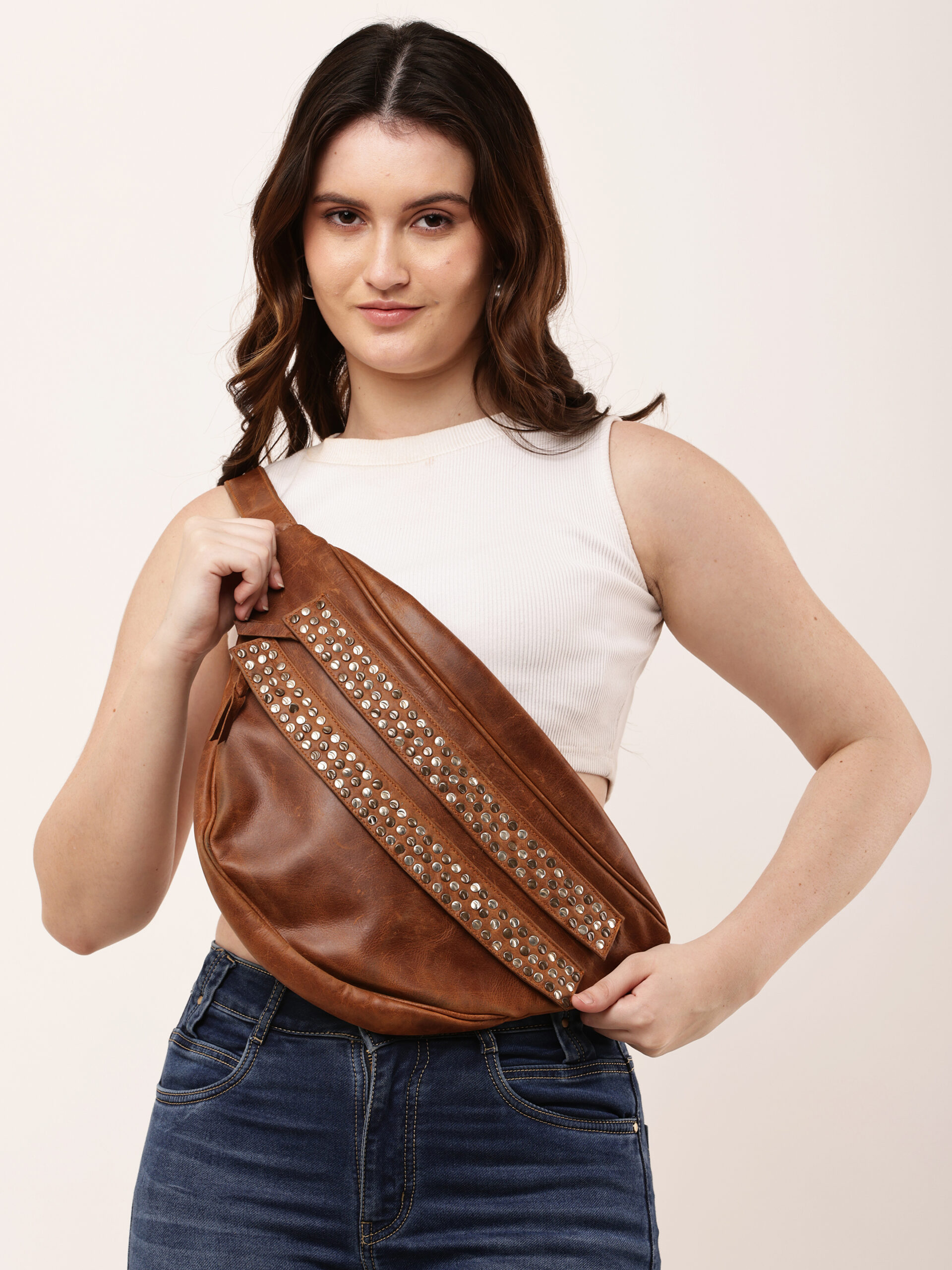 Dario Lario Studded Brown Leather Belt Bag – Premium Crossbody Waist Pack