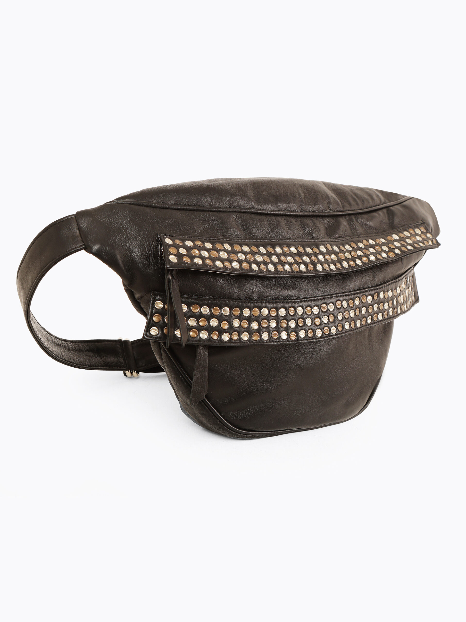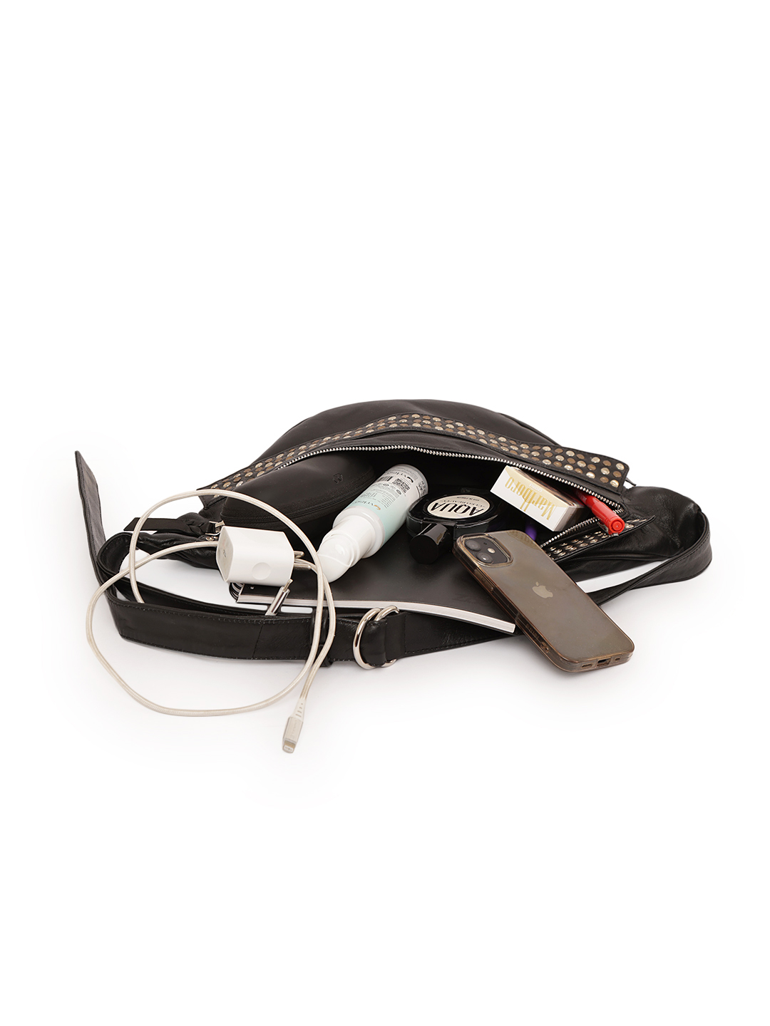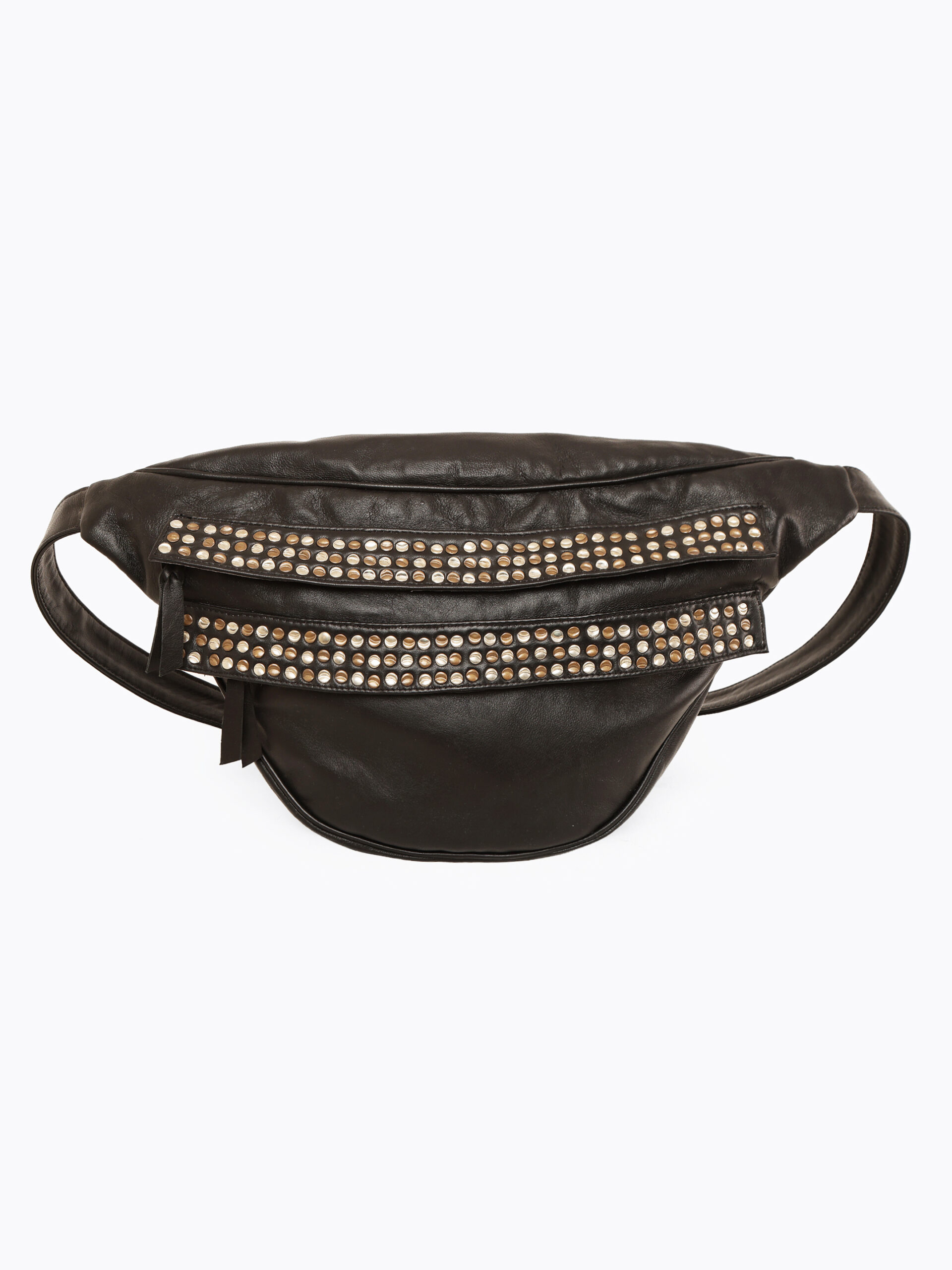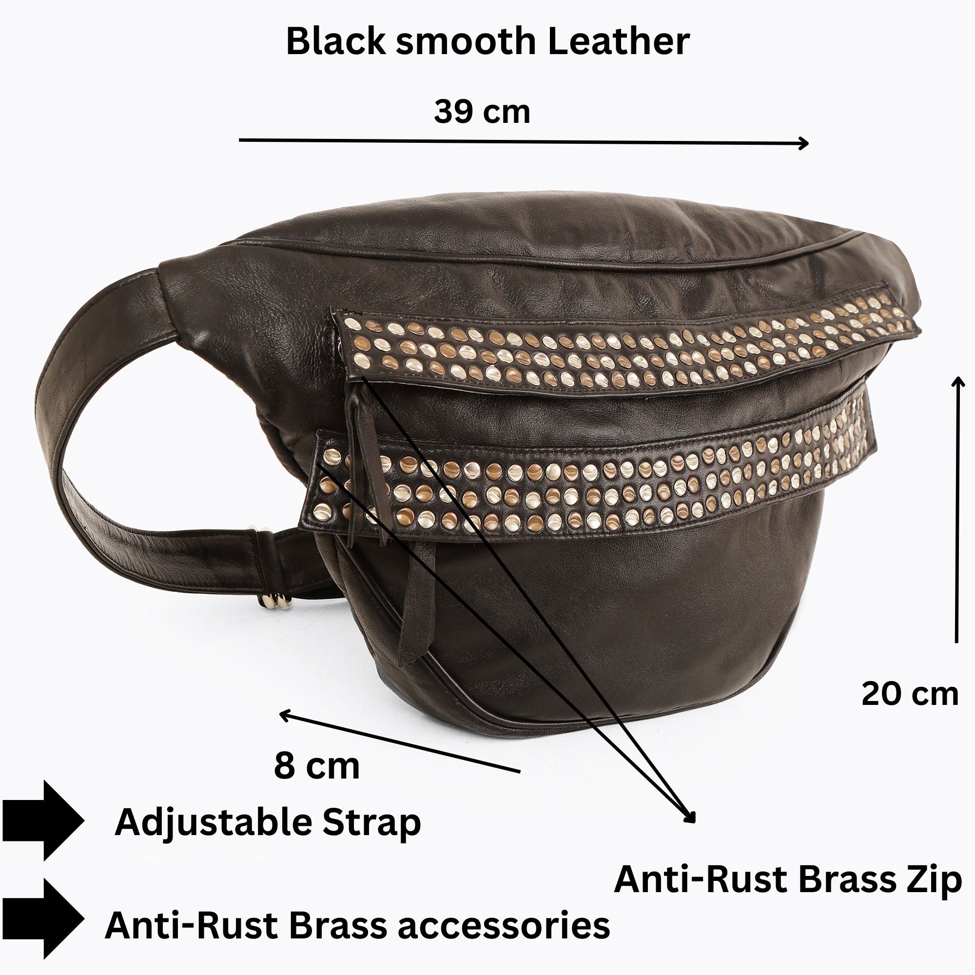 The Dario Dual-Studded Leather Waist Pouch – Black Luxe Edition