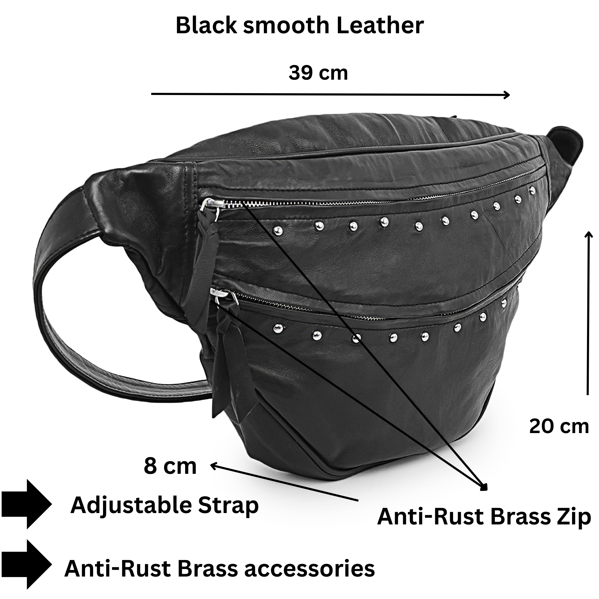 The Minimal Stud Leather Waist Pouch – Dual Zip Essentials Bag (Black)
