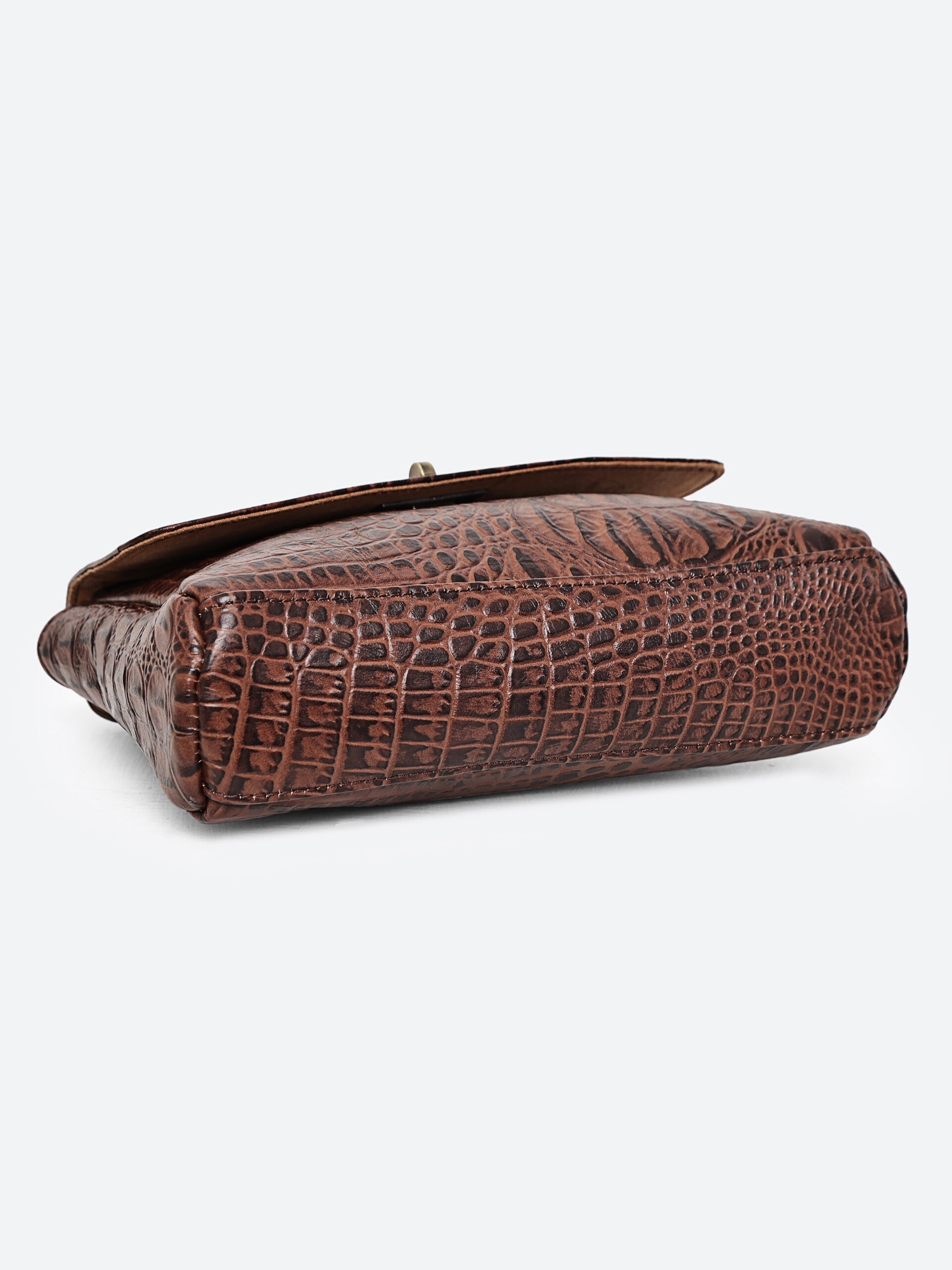 Bring a touch of classic luxury to everyday carry with the Vintage Croc‑Texture Brown Sling Bag. Its beautifully embossed crocodile pattern gives depth and character, while the compact, structured shape keeps the look sophisticated rather than bulky.